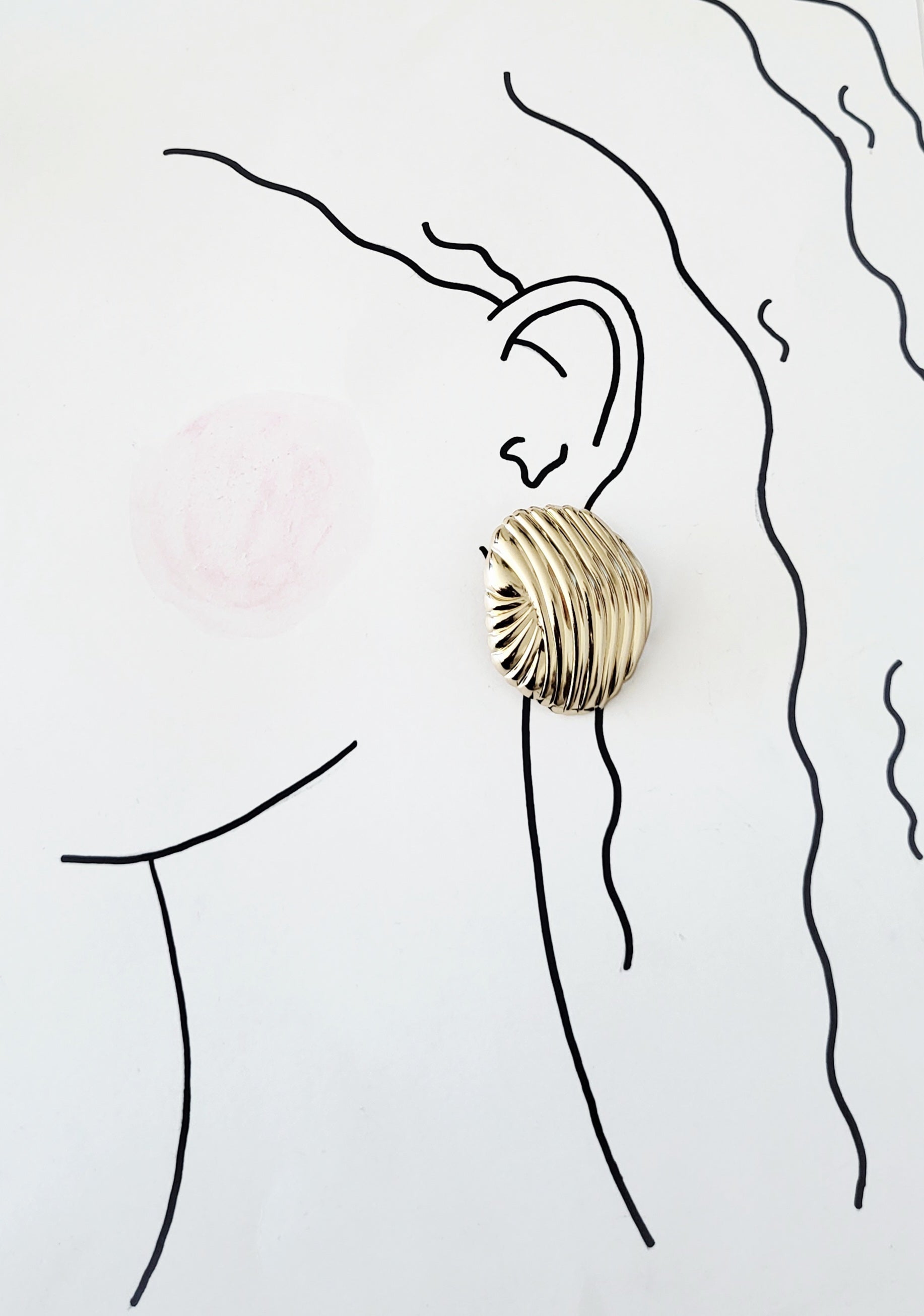 The Gilded Wave Statement Earring brings an artful, sculptural edge. Its ridged, swirling form creates a dynamic play of light and shadow, giving the piece a bold yet refined presence. Lightweight and thoughtfully shaped, it adds instant polish to any look while maintaining an effortless, contemporary feel.