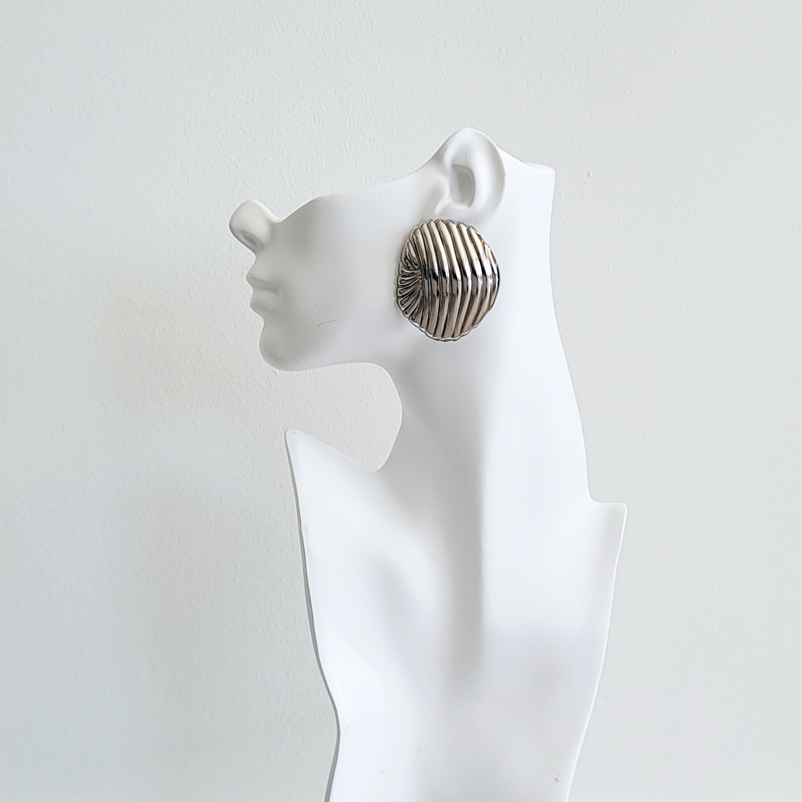 The Gilded Wave Statement Earring brings an artful, sculptural edge. Its ridged, swirling form creates a dynamic play of light and shadow, giving the piece a bold yet refined presence. Lightweight and thoughtfully shaped, it adds instant polish to any look while maintaining an effortless, contemporary feel.