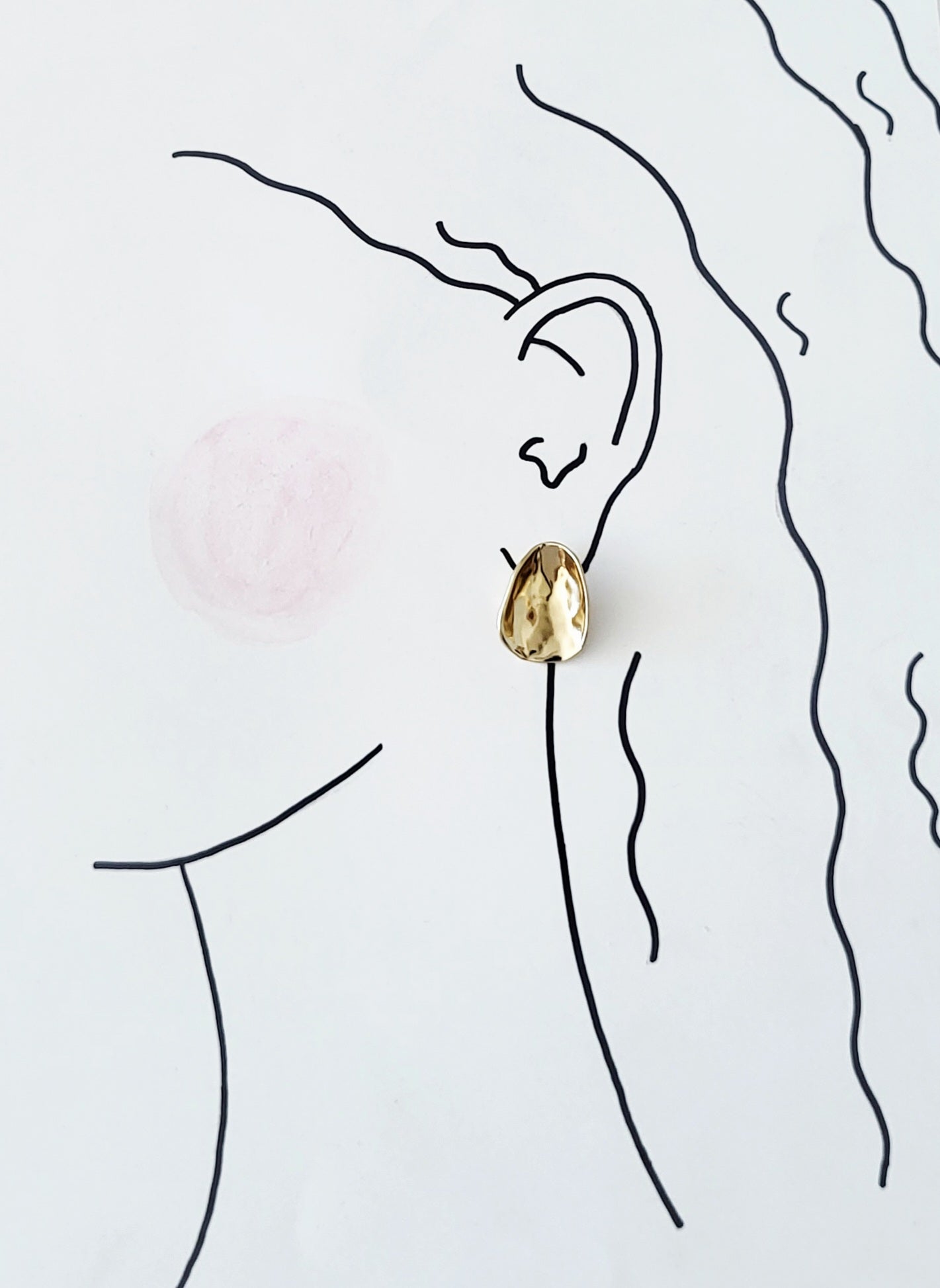 The Molten Form Stud Earring organic, fluid shape mimics the look of hand‑formed metal—smooth, reflective, and intentionally imperfect. The polished surface catches the light beautifully, giving the piece a warm, modern glow. Bold enough to stand alone yet minimal enough for daily wear, this earring adds a touch of contemporary artistry to any look.